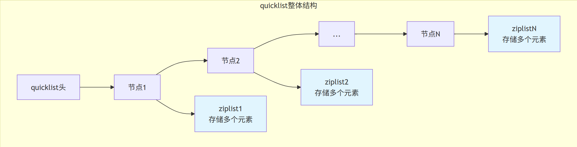 quicklist = ziplist + linkedlist,结合两者的优点: