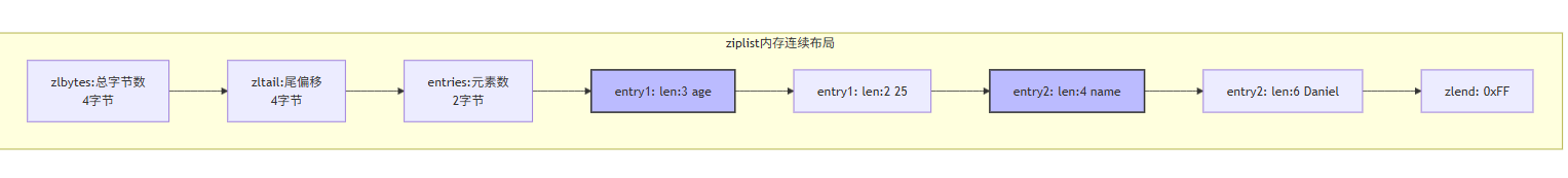 ziplist(压缩列表):连续内存,但修改需重新分配,不适合频繁头尾插入,适合小数据量