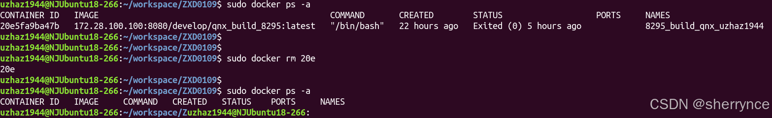 sudo docker rm xxxx 删除某个容器