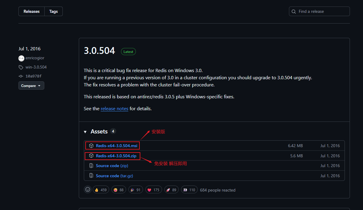 下载地址:https://github.com/MicrosoftArchive/redis/releases