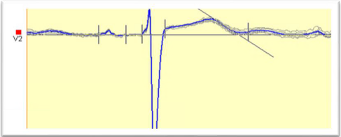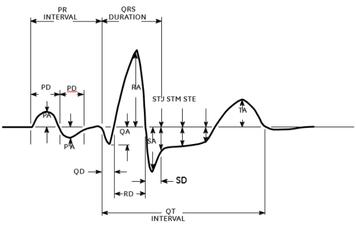 该测量包含所有这些单独心电波形的振幅值(以QRS波群起始点为参考)以及持续时间。