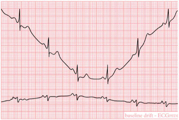 基线漂移可能会由呼吸、出汗、身体运动、电极松动、电极干燥,或者未使用Ag/AgCl电极所导致。