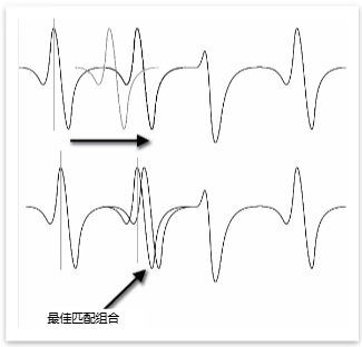 此后,QRS检测器会继续寻找具有相同形状的波形,如果找到了匹配的波形,就会将其归类为另一次QRS检测结果,并继续对比其他波形,以寻找最匹配的结果。这个采样时间点在后续构建波形时会被用到。