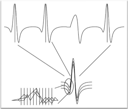 也就是说,在每一个采样时间点,都会选取这些叠加在一起的搏动中的中间电压值来构成该复合波形。