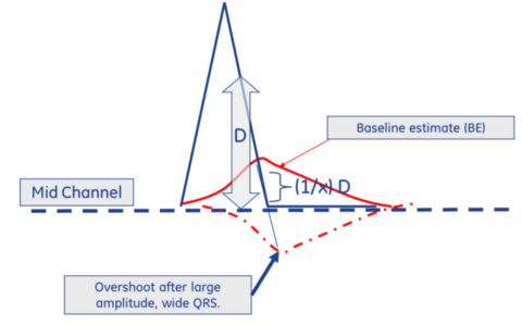 首先计算出估计的基线漂移幅度,然后从输入信号中减去这个数值。在实时处理过程中,每个采样点的振幅都是相对于通道的中心位置来测量的,基线漂移幅度的估算值是通过累计这些振幅值中的一部分来得出的;而当高通滤波器的设置参数增大时,这一部分所占的比例也会随之增加。
