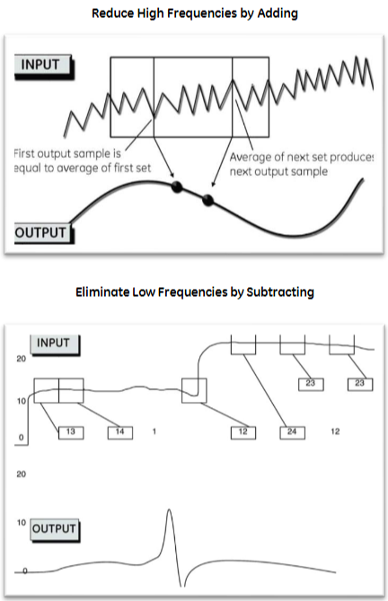 实际上就是对样本进行加减运算,多个样本相加来减弱高频信号强度,多个样本相减减弱低频信号强度。