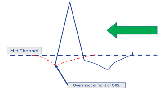 12SL 始终能够去除低频成分(即<0.32Hz)而不引起ST段畸变,其工作原理是将同一滤波器正向与反向运行于整个10秒周期内,通过这种方式,QRS波的两侧均受到同等影响,且ST段相对于QRS波起始点不再出现压低现象。