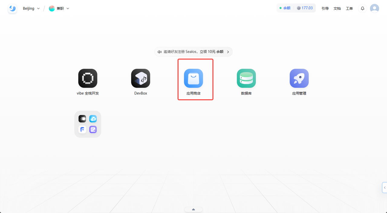 我登录 Sealos 桌面,直接点开"应用商店"。