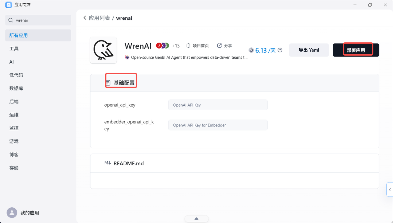 Sealos 应用商店将 wrenai 及其所有复杂的依赖项打包成了一个整体,让部署过程简化到了极致。