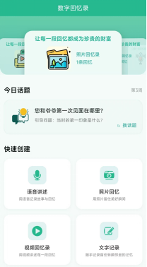 打造个性化数字回忆录功能,支持上传老人与家人的老照片、文字回忆等素材,构建专属情感档案,永久留存家庭温情瞬间。便于老年用户随时翻阅回顾,既为老年群体提供了情感寄托载体,也成为连接代际情感的重要纽带,让珍贵回忆得以数字化传承。