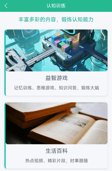以 "娱乐 + 训练" 为核心设计理念,内置拼图游戏、益智互动、"跟我学"、功德木鱼等多元化训练模块,通过趣味化形式锻炼老年群体的逻辑思维与反应能力,丰富日常精神生活。