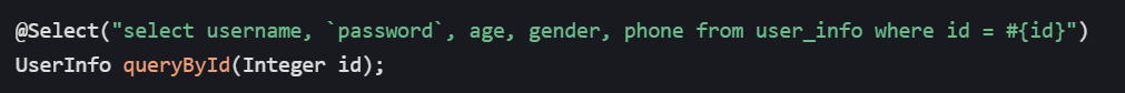 id是 Integer 类型,拼接后 SQL 语法合法,能正常执行,但存在 SQL 注入风险 (比如参数传入**1 or 1=1,会查询全表**)。
