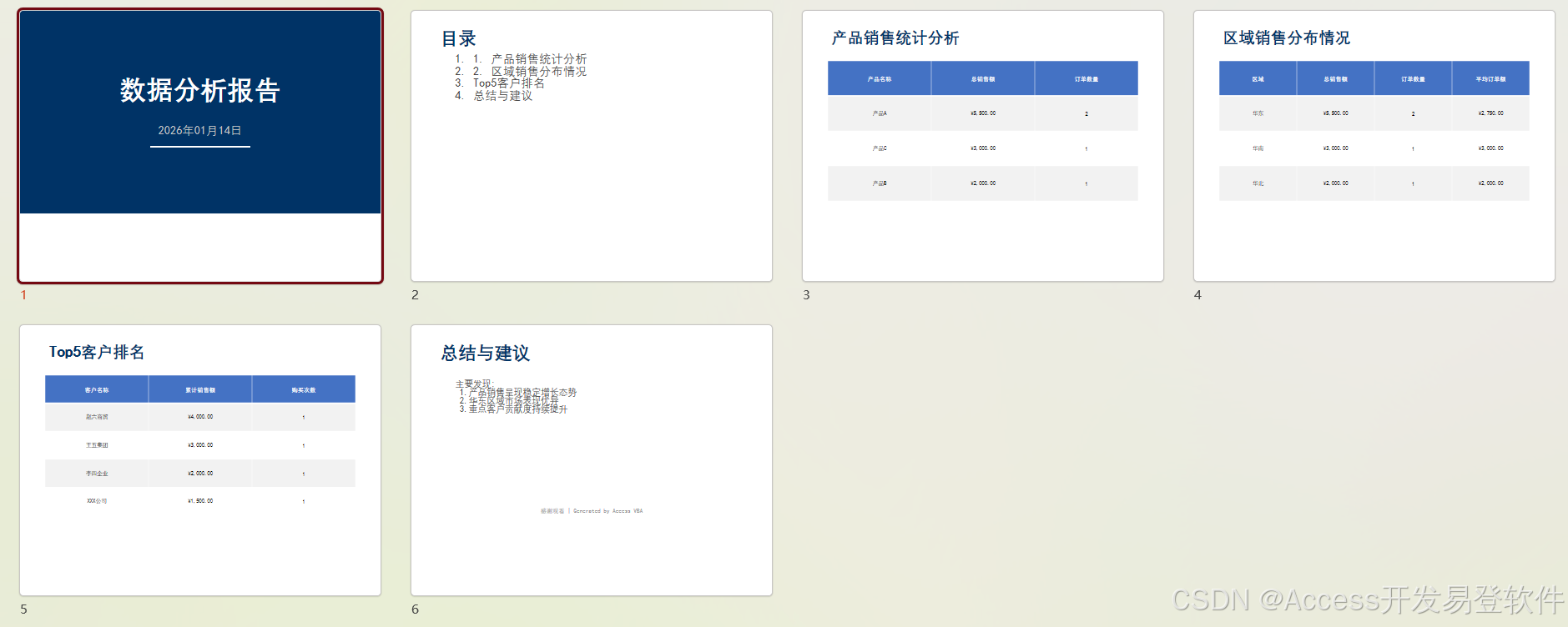 Call AddQuerySlide(pptPres, "销售统计", "产品销售统计分析", 3)