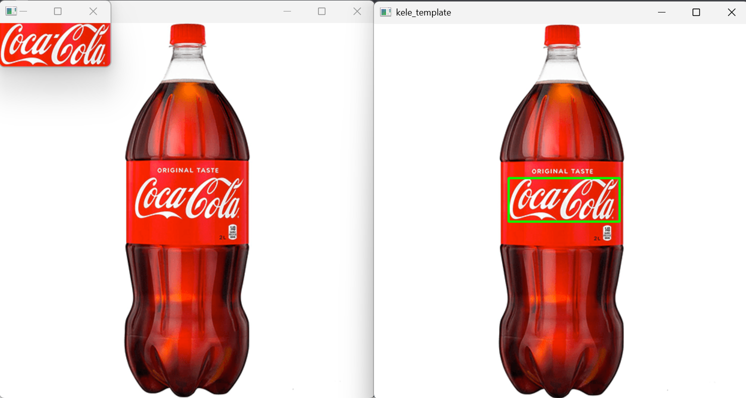 kele_template = cv2.rectangle(kele, top_left, bottom_right, (0, 255, 0), 2) # 绘制矩形