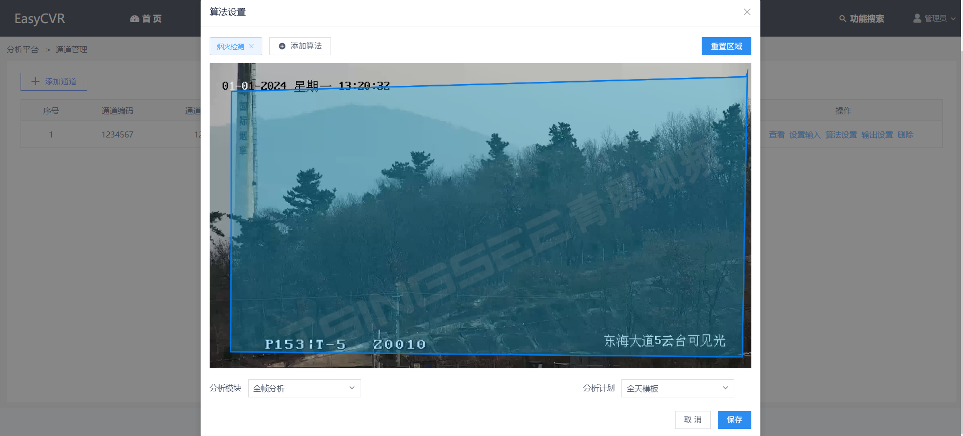 2、平台接入与管理:将各监控摄像头接入EasyCVR视频融合平台。平台能对接智能分析网关,利用内置的烟火识别算法,能实时监测火灾的隐患。一旦发现异常情况,就会立即触发报警机制,发送告警信息,并截图和录像。