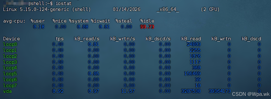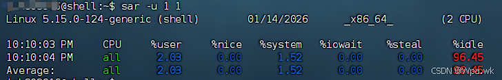 I/O 等待时间(wait) → CPU 空闲但有未完成 I/O。0 表示无 I/O 瓶颈。 |