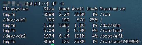 - df : 查看系统磁盘空间
