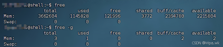 命令演示: free, free -g