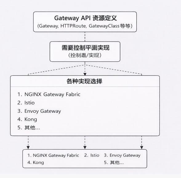 控制器厂商(如 Envoy、Traefik、Istio、Kong)可以实现这套 API。