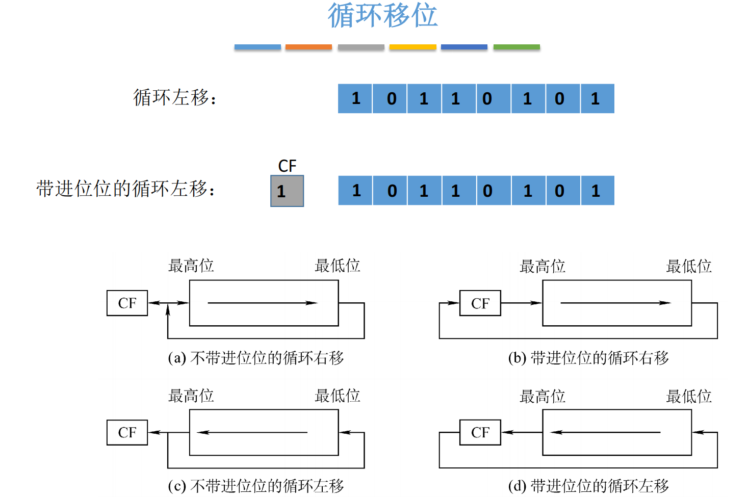 循环移位保留所有位,带进位版本用于大数运算
