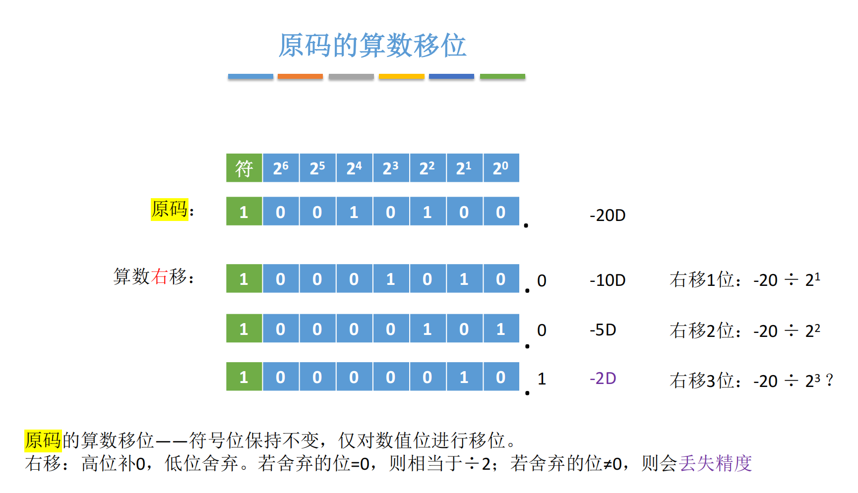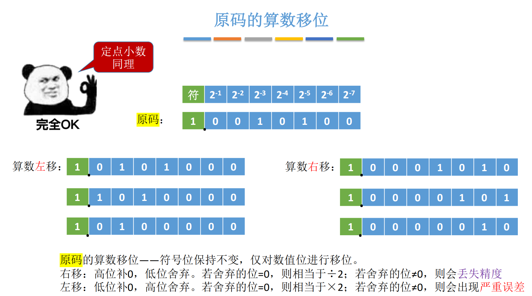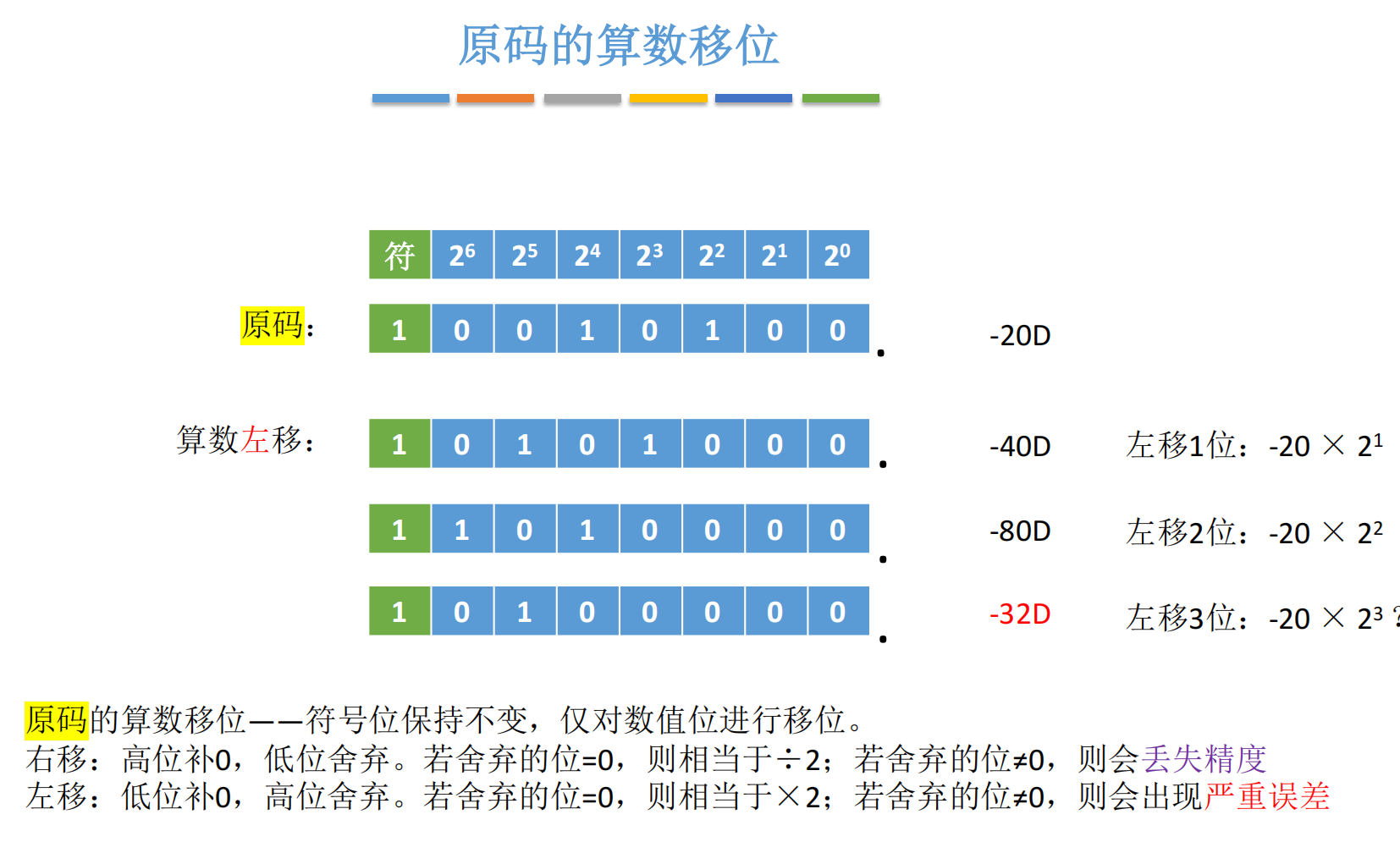 2.1 原码的算术移位:符号位不动,数值位移