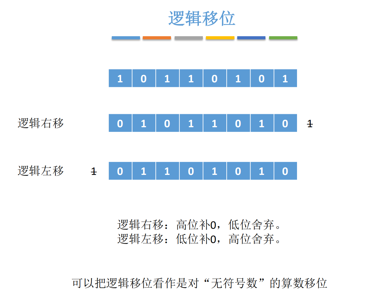 逻辑移位不关心符号 ,适用于无符号数 或位操作。