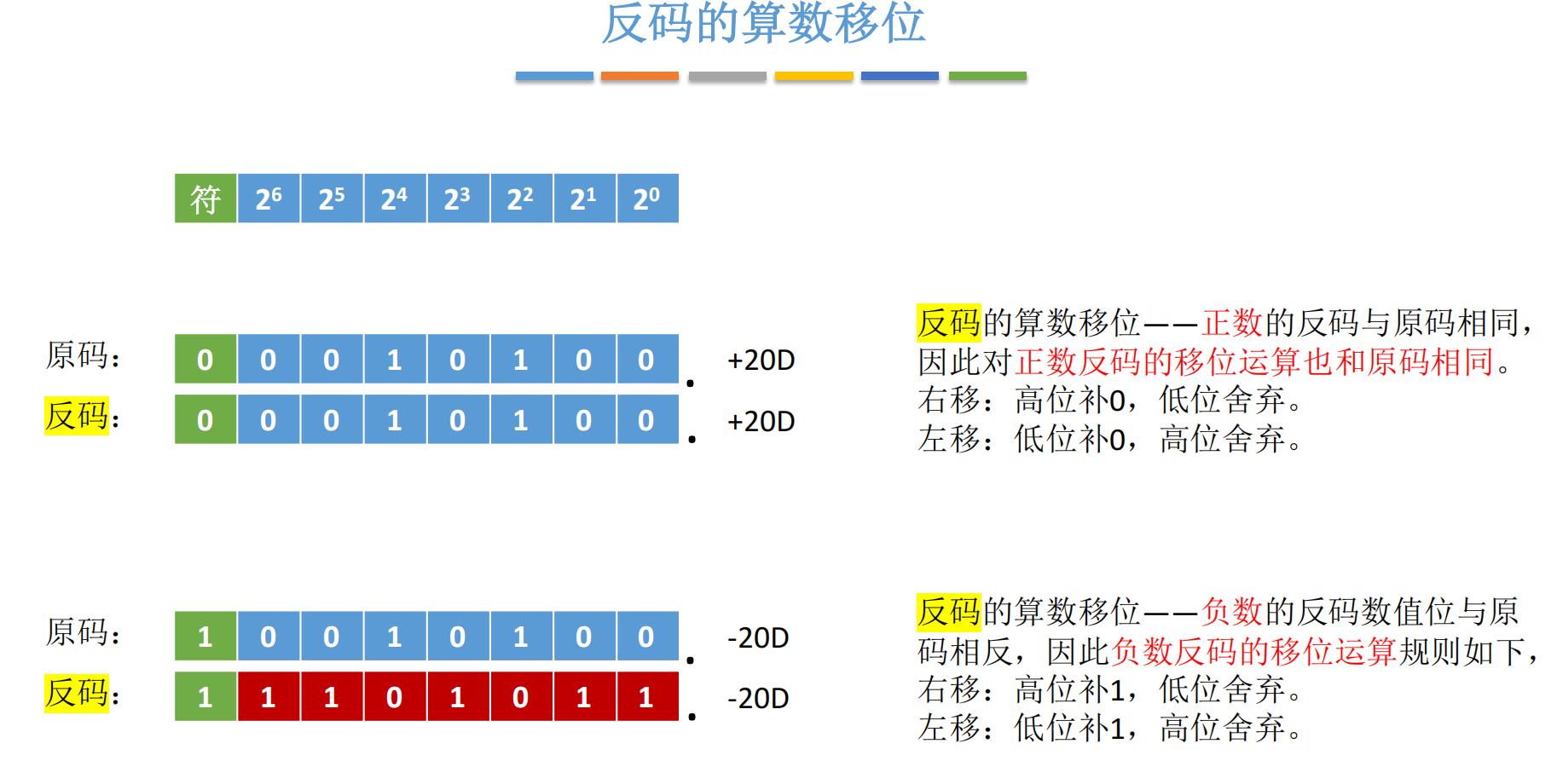 2.2 反码的算术移位:负数全补 1