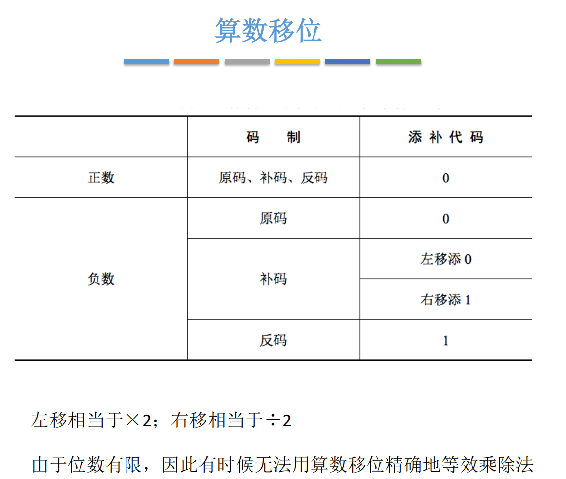 2.4 算术移位总结表