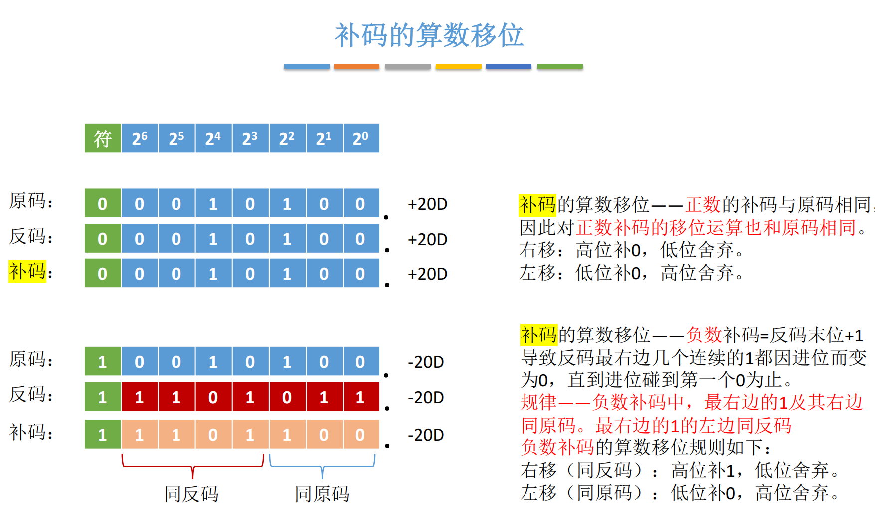 | 补码 | 补 0 | 左移补 0,右移补 1 |