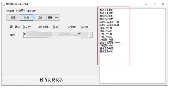 点击[升级],此时右侧状态栏会显示正在下载固件。