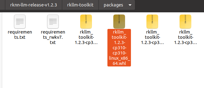 关键文件:packages/rkllm_toolkit-1.2.3-cp3xx-linux_x86_64.whl。