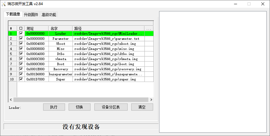 双击打开RKDevTool,然后将开发板接上电源,通电以后,用Type-C数据线将ARM板和电脑连接