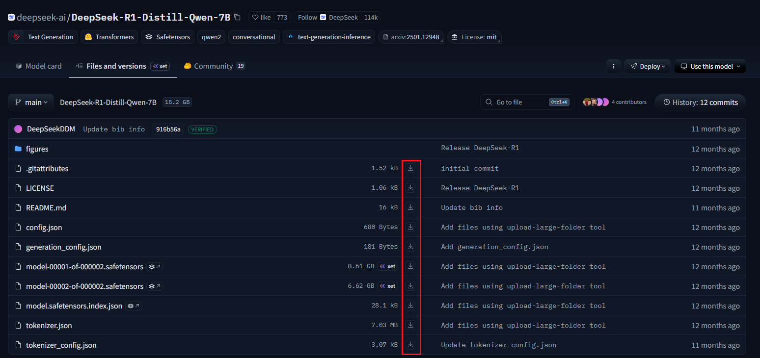 Hugging Face : https://huggingface.co/deepseek-ai/DeepSeek-R1-Distill-Qwen-7B/tree/main,这个链接是