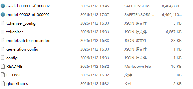 这里提一下为什么从Hugging Face上下载的时候有model-00001-of-000002.safetensors和model-00002-of-000002.safetensors两个文件,是因为像 DeepSeek-R1-Distill-Qwen-7B 这样的大模型,参数量很大。为了方便下载(防止单个文件过大导致下载失败或文件系统不支持),Hugging Face 通常会将模型权重切分成多个文件。model-00001-of-000002.safetensors 和 model-00002-of-000002.safetensors 就像是一个压缩包的 Part1 和 Part2。