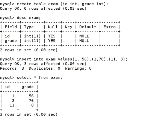 案例:对stu表和exam表联合查询,把所有的成绩都显示出来,即使这个成绩没有学生与它对应,也要显示出来