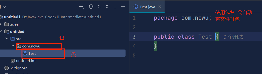 包名com.ncwu 为小写, 以.为分割
