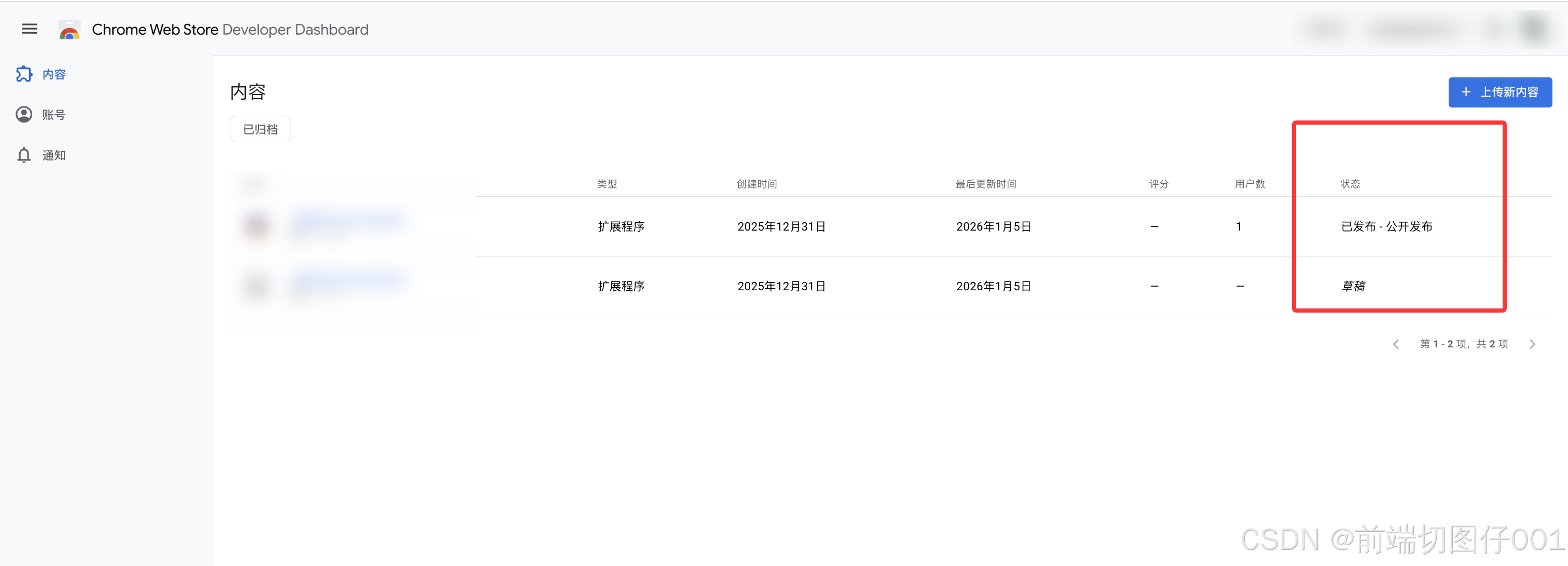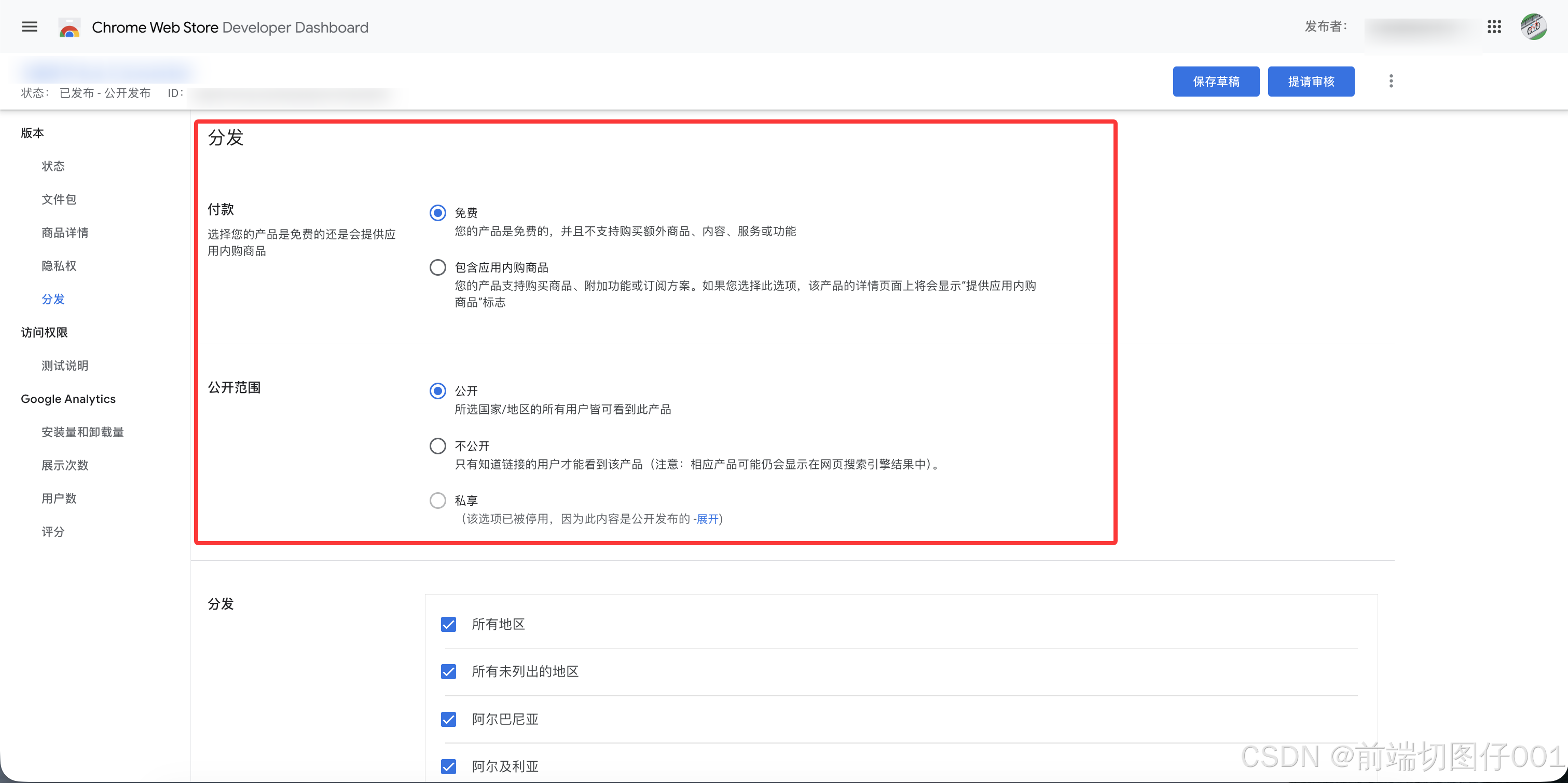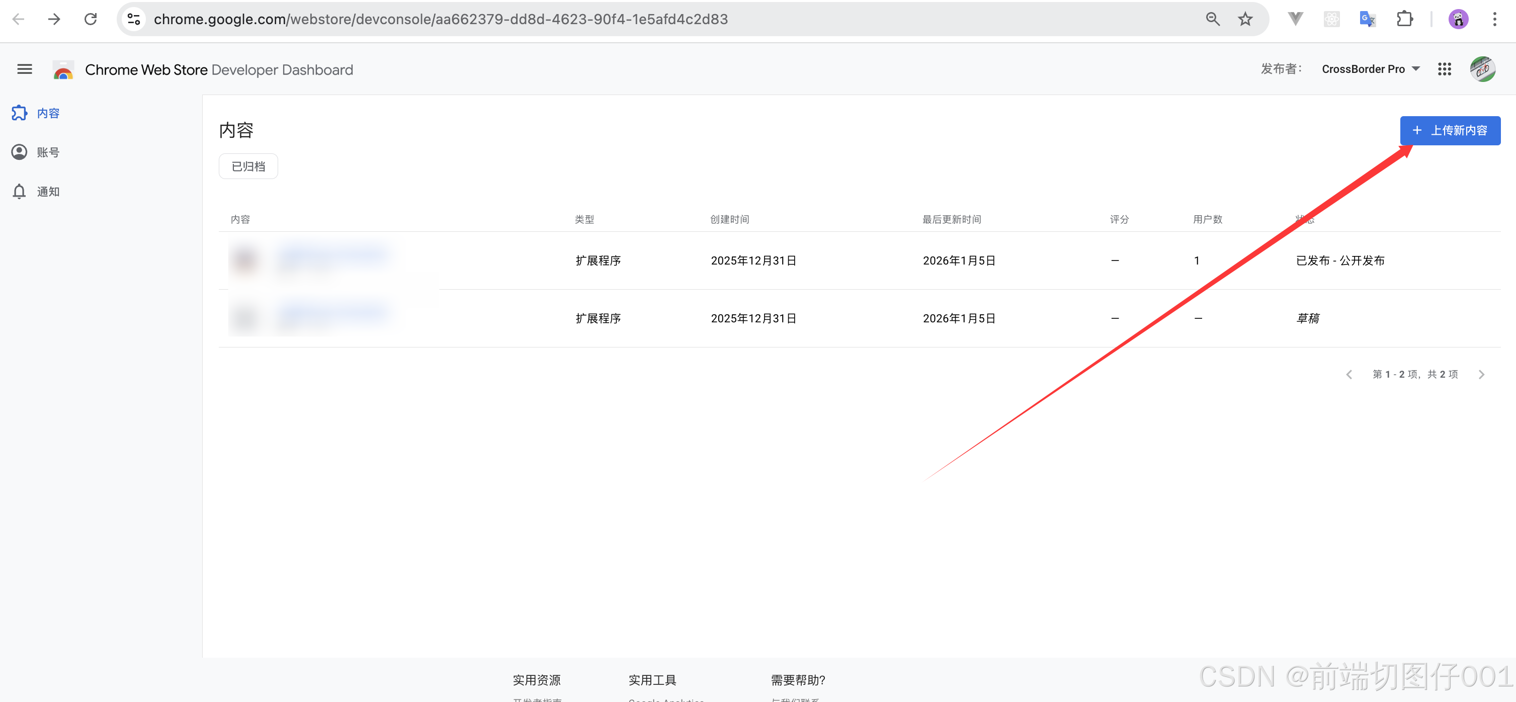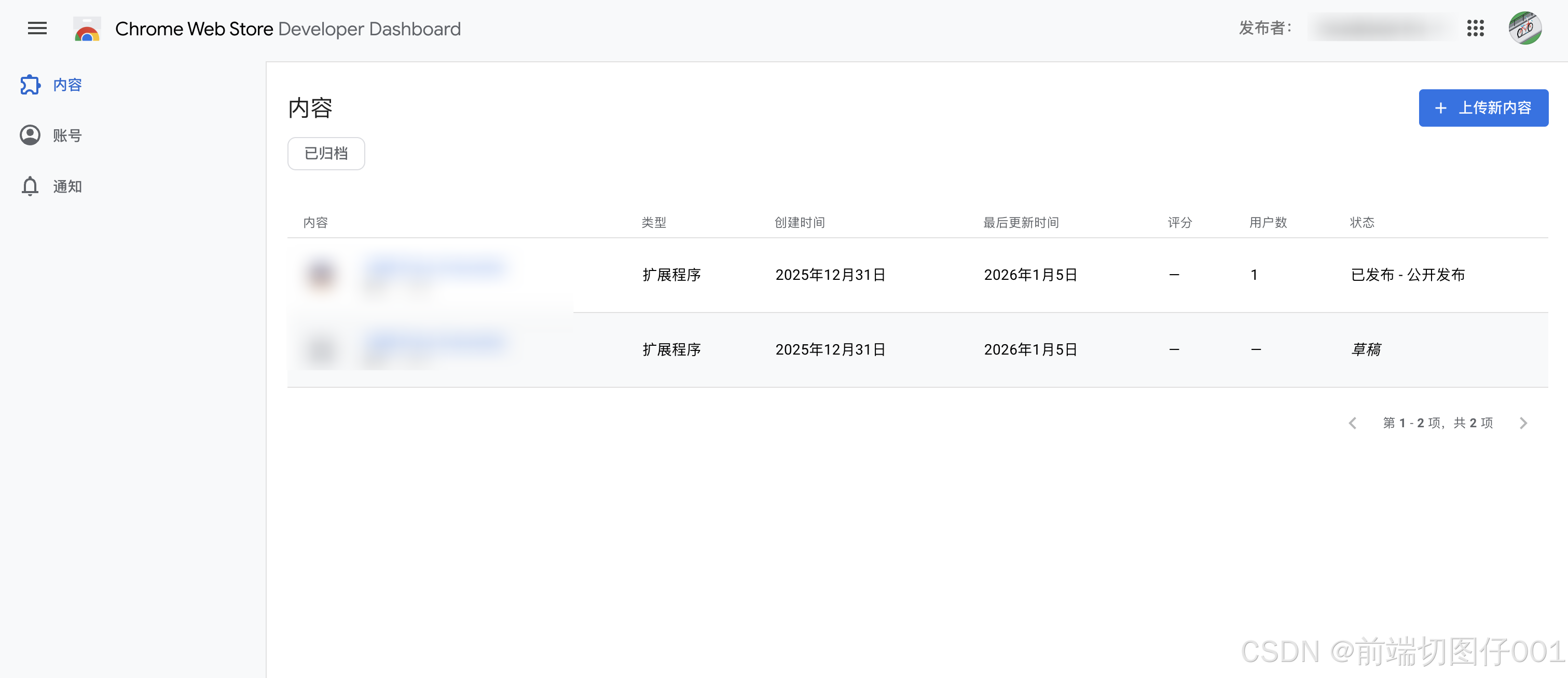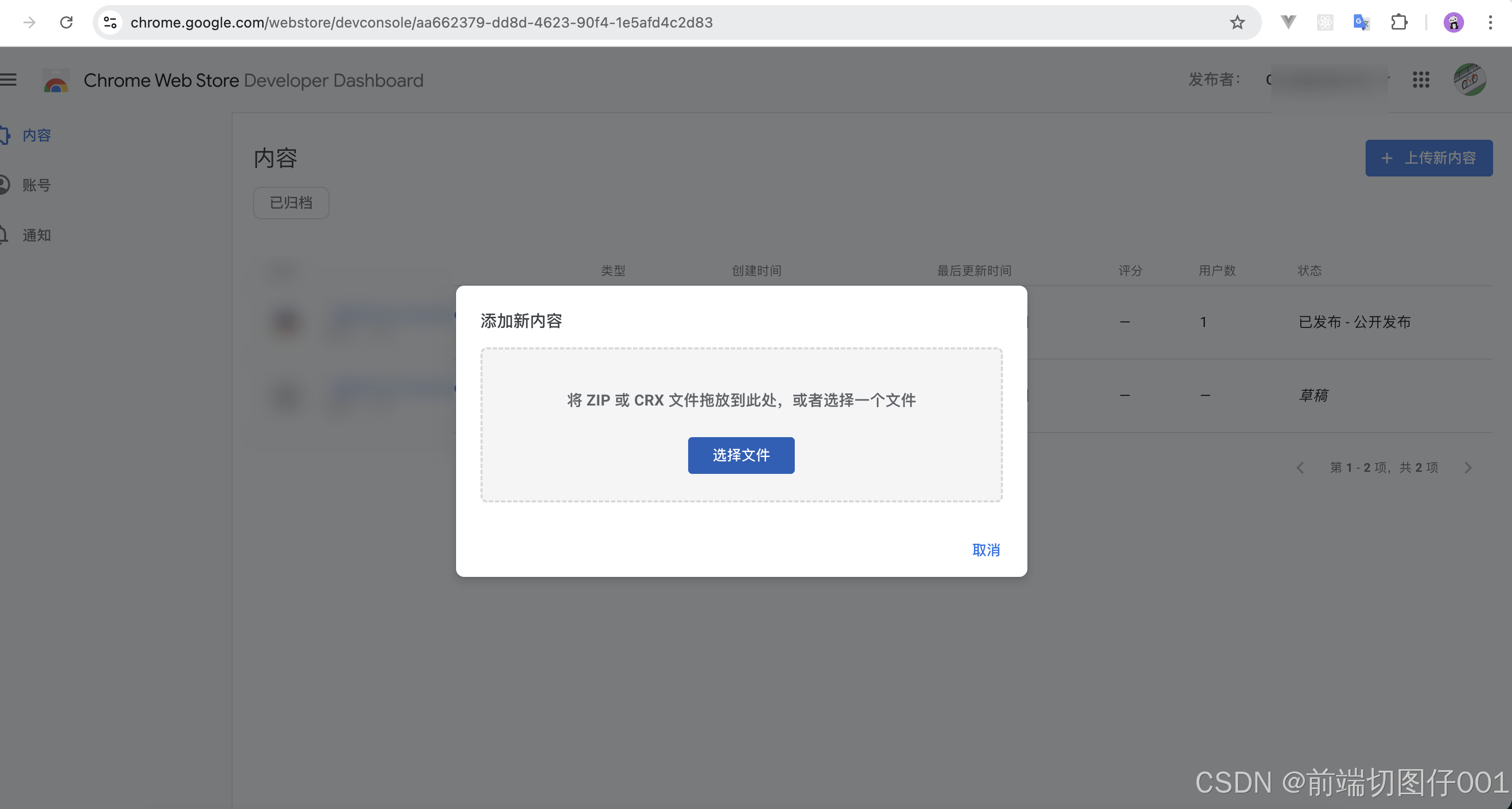 - 打开 Chrome Web Store Developer Dashboard