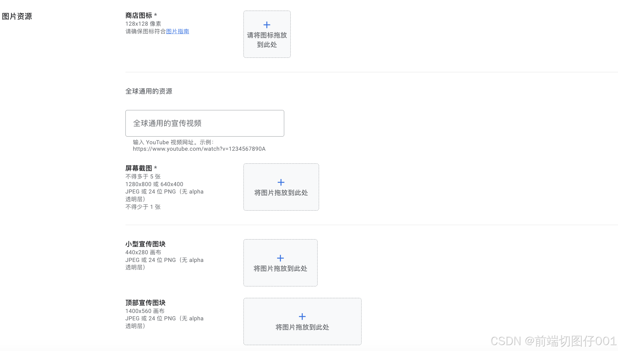 | 图片类型 | 尺寸要求 | 数量 | 是否必须 |