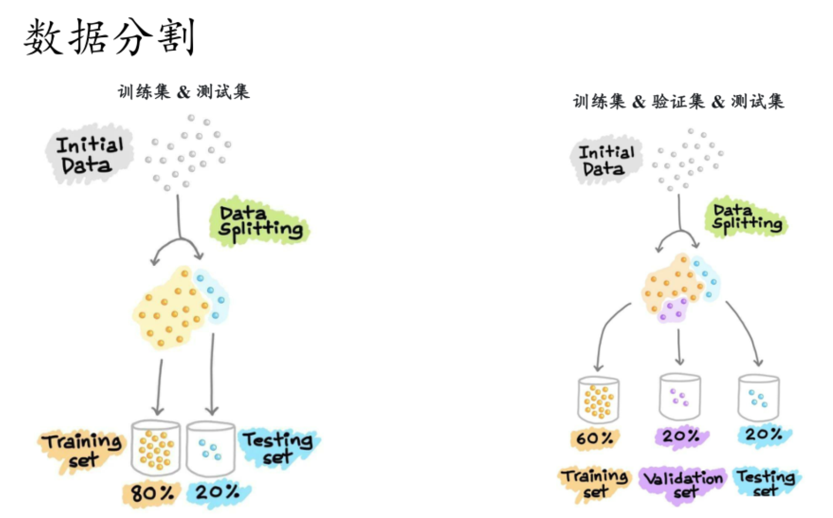 - "k折"指的是将数据集随机划分为k个大小相近的互斥子集(或称为折,fold)。在每一次验证过程中,使用其中的k - 1个子集作为训练集来训练模型,剩下的1个子集作为验证集来评估模型的性能。