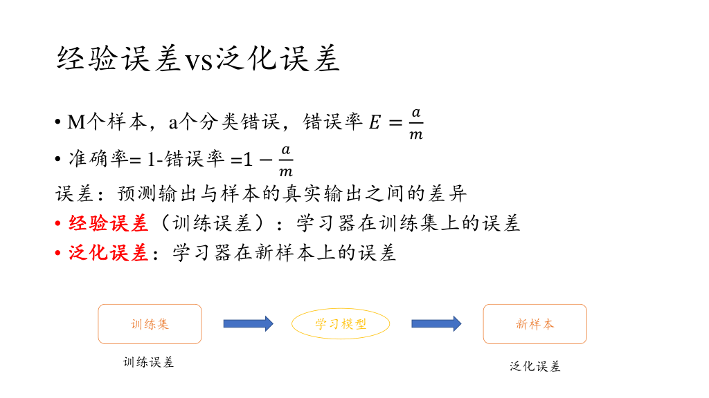经验误差=训练误差【学习器在训练数据上的预测误差】
