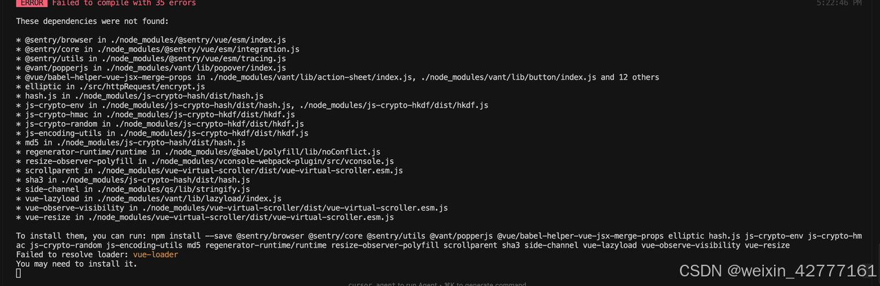 导入了没有在 package.json 安装的包,手动安装相关依赖