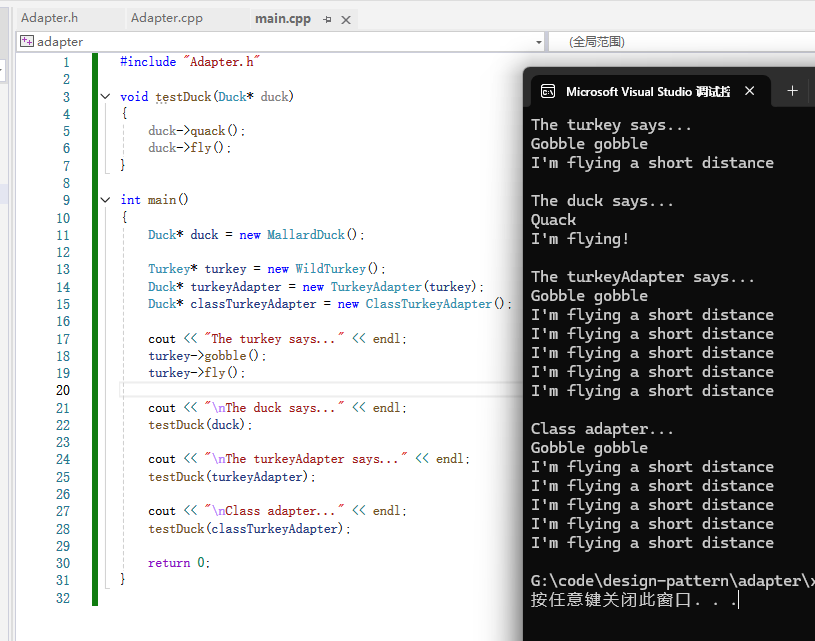 上面代码我们还顺便实现了DuckAdapter类,采用随机数来实现飞行方法平均五次飞一次。
