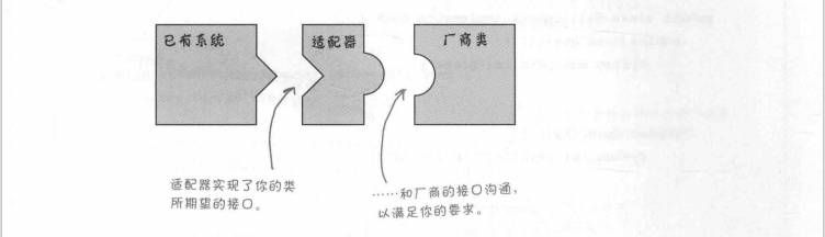 OK,我们不能通过改变已有代码来解决问题(而且不能改变厂商的代码)。我们可以编写一个类,把新的厂商接口适配成我们所期望的接口。
