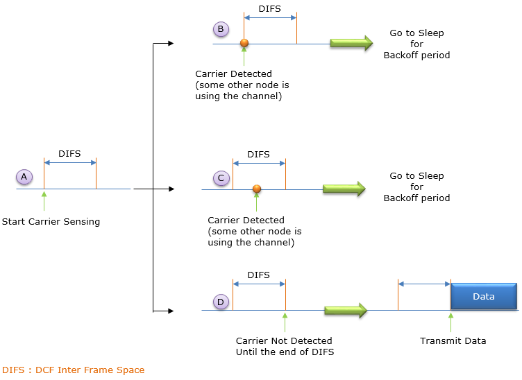 DIFS (固定等待时间): 这是一个必须等待的"冷静期"。
