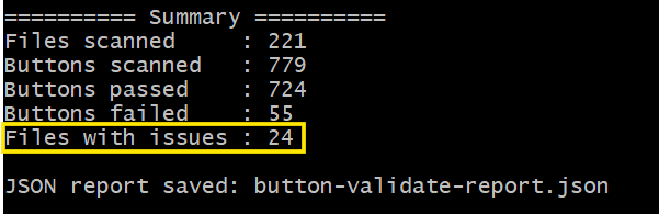 validate-buttons.mjs是通过验收目标的规则生成的,运行之后很容易发现哪些文件存在问题: