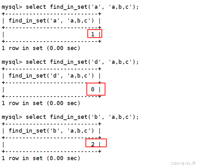find_in_set(sub,str_list) :如果 sub 在 str_list 中,则返回下标;如果不在,返回0。