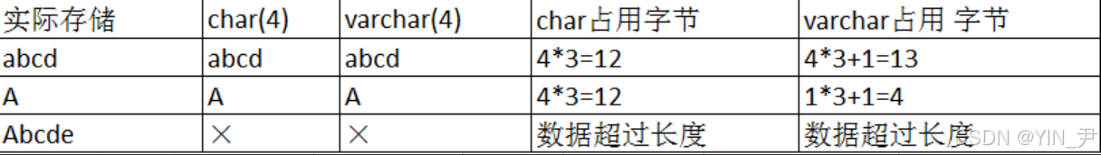对于char来说,如果我们指定长度为4------char(4),定长的意思就是不论我实际插入了几个字符(比如这一列我只插入了一个'a'),我用的空间永远是4个字符的空间。(类似C/C++中的静态数组,比如char arr[4];)