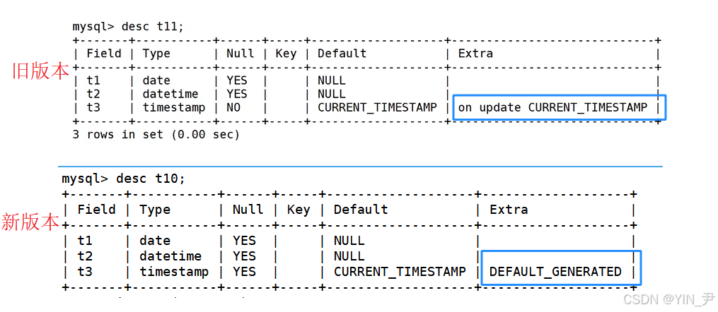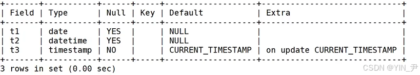 注意:老一点版本的MySQL中时间戳类型的默认值为CURRENT_TIMESTAMP,即当前时间戳