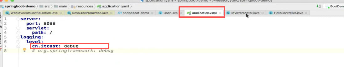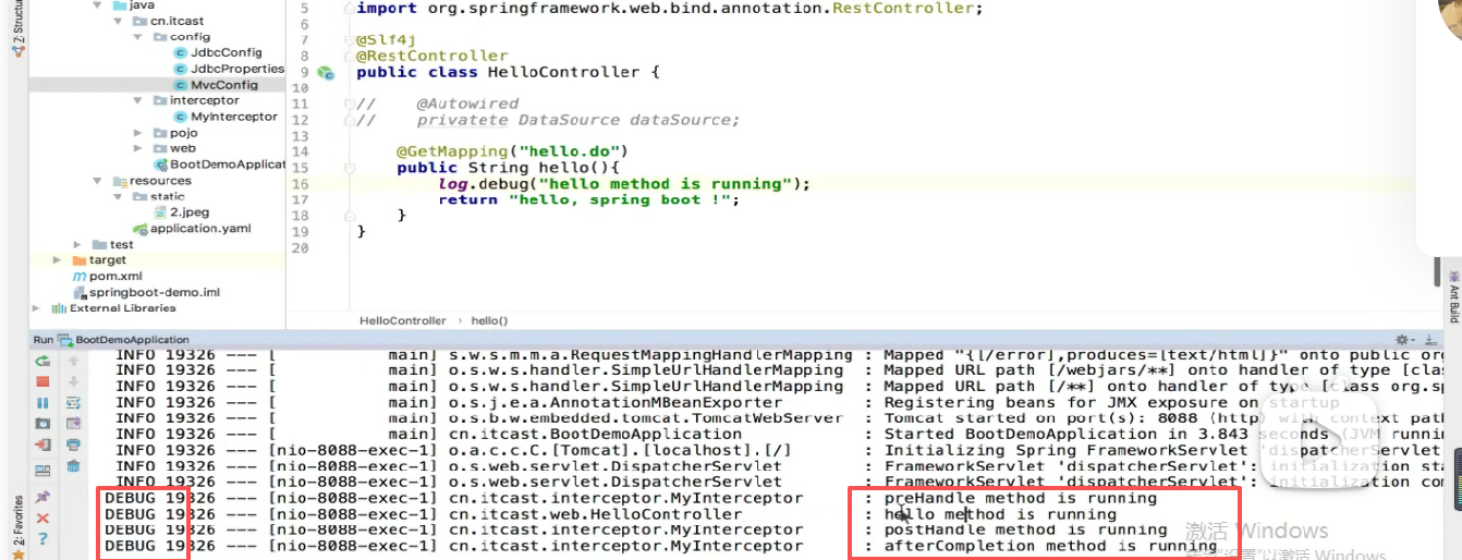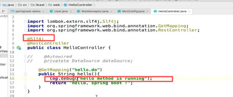 我们可以记debug级别,因为我们日志级别现在调的是debug级别,所以日志可以打印出来可以看见: