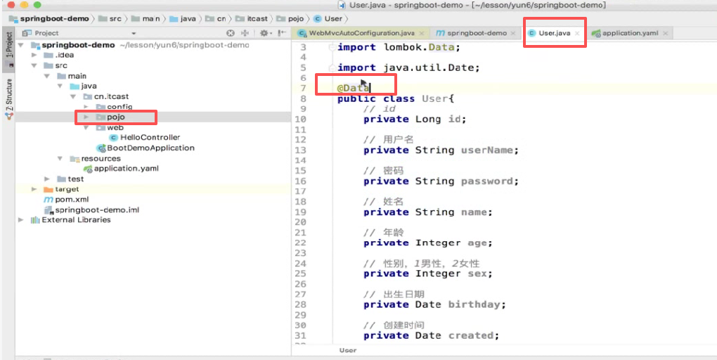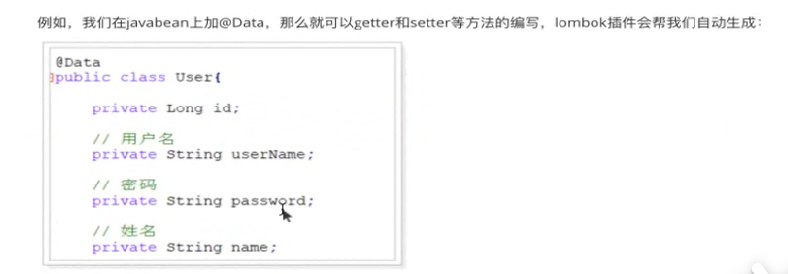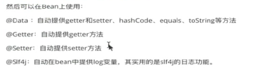 他还有日志相关方法@Slf4j,后天搭项目的时候给大家讲一下日志这块怎么去弄,现在先不说了,现在先知道有个Date注解就行了。
